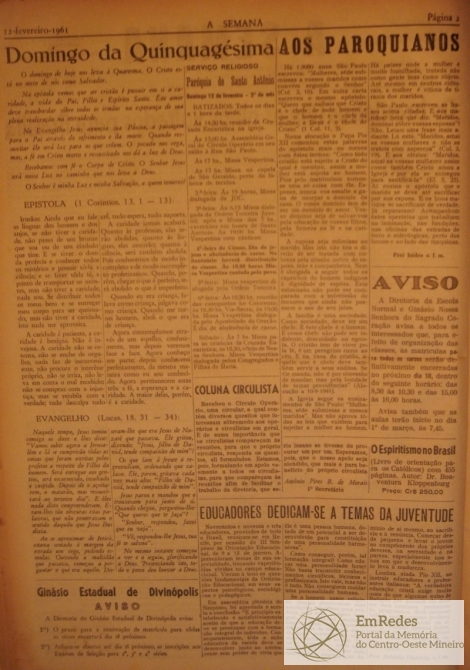 EDIÇÃO N° 7. 12 DE FEVEREIRO DE 1961. REDATOR: FREI PASCOAL.