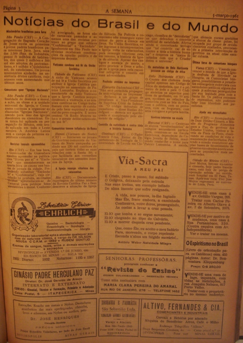 EDIÇÃO N° 10. 5 DE MARÇO DE 1961. REDATOR CHEFE: FREI PASCOAL.