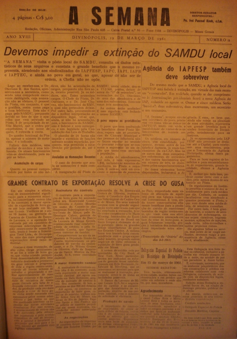 - EDIÇÃO N° 12. 19 DE MARÇO DE 1961. REDATOR CHEFE: FREI PASCOAL.