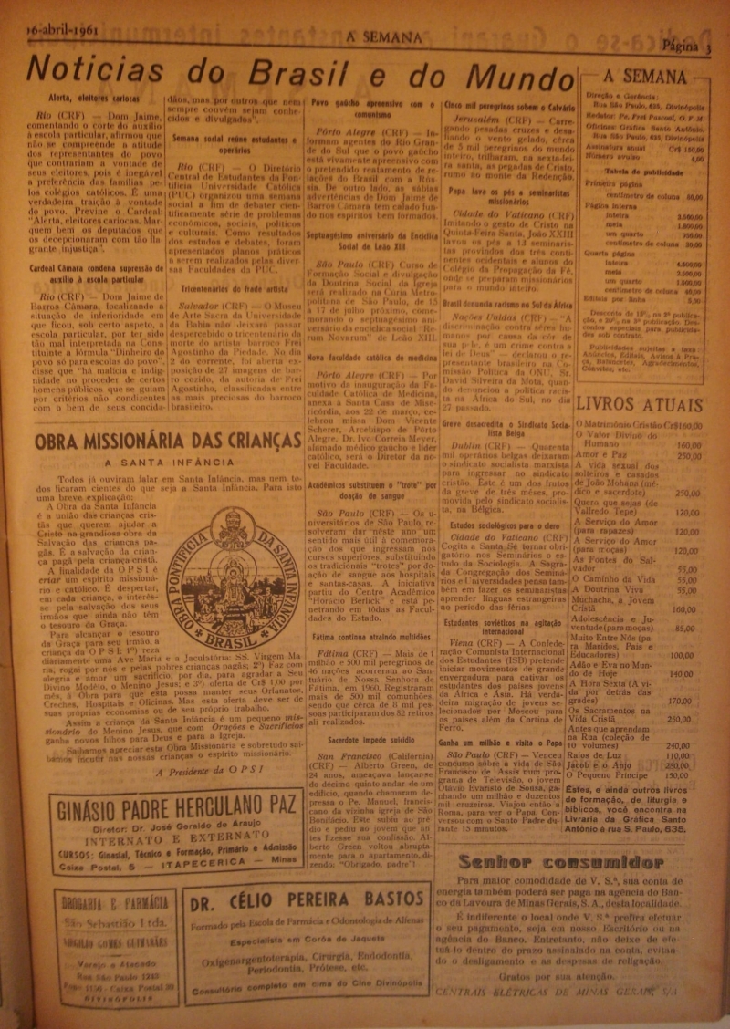 - EDIÇÃO N° 15. 16 DE ABRIL DE 1961. REDATOR CHEFE: FREI PASCOAL.