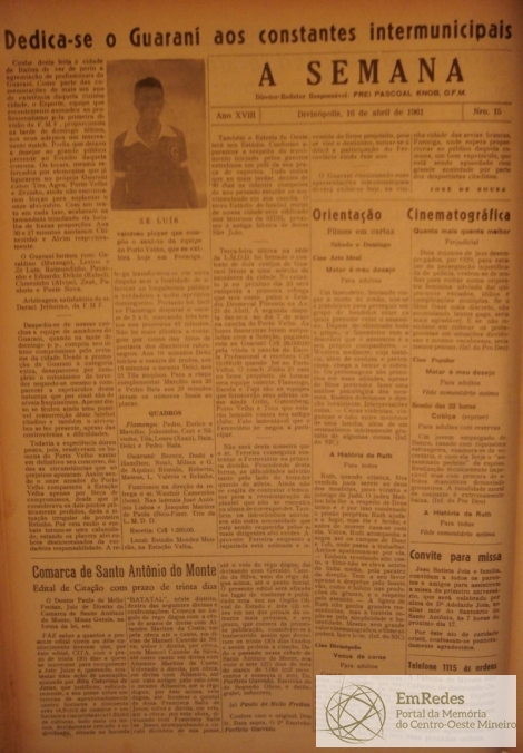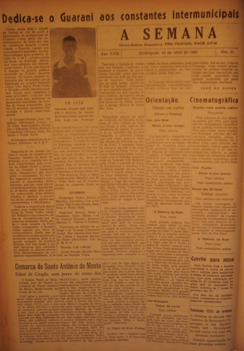 - EDIÇÃO N° 15. 16 DE ABRIL DE 1961. REDATOR CHEFE: FREI PASCOAL.