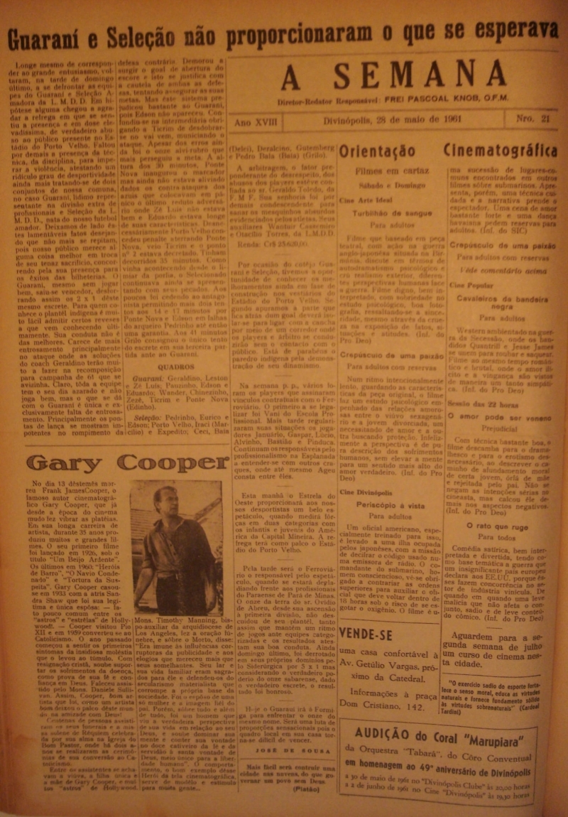 - Gary Cooper.Matéria sobre a morte de Gary Cooper e um pouco de sua história de vida.Pág 4