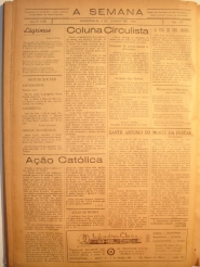 Notícias: Evangelho; Não perca a novena em honra de S. Antônio; Corda tríplice não se rompe; Santo Antônio do Monte em festa; Paróquia de S. Antônio: Serviço religioso-Missas marcadas-Escola Normal; paróquia do Divino Espirito Santo; Notícias de Minas: Descobertas importantes jazidas de minérios no Triângulo Mineiro, Nova quota do imposto de renda será entregue as prefeituras municipais, O enxerto da córnea numa operação cirúrgica comum; Notícias das Missões; O que o rosto reflete; Água na parede; Festa do padroeiro da paróquia de Santo Antônio; Lares modernos; Exibição do filme “Os noivos”, Cotação moral de filmes; Lágrimas; Notas Sociais: Aniversários- Nascimento- Graças alcançadas; Ação Católica; Coluna Circulista; Santo Antônio do Monte em festa; Monsenhor Otaviano; A teia de uma aranha.