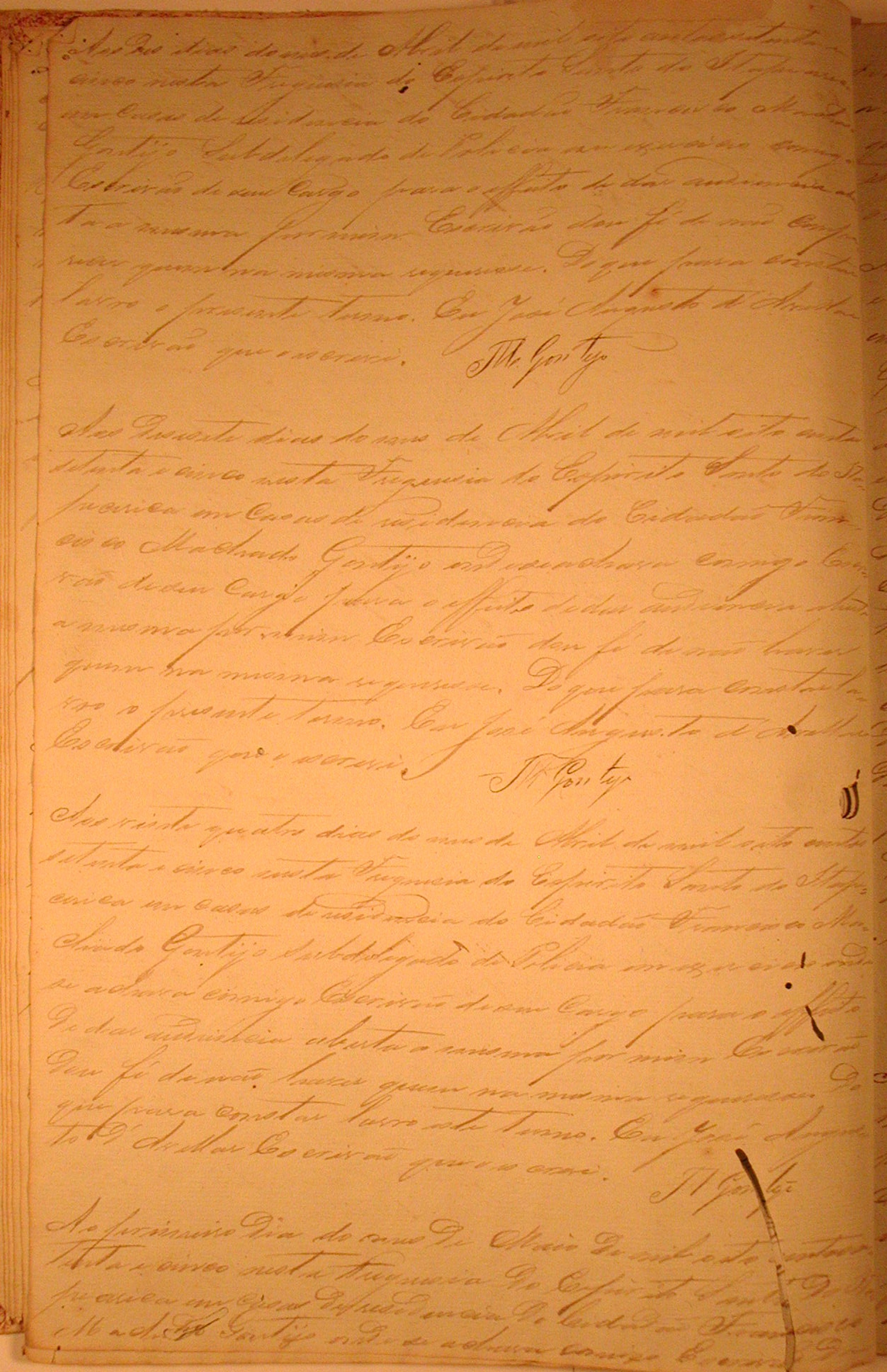 Escrivão - Arraial - Espírito Santo do Itapecerica - Livro de Protocolo e Audiência do Juiz de Paz - Termo de Audiência