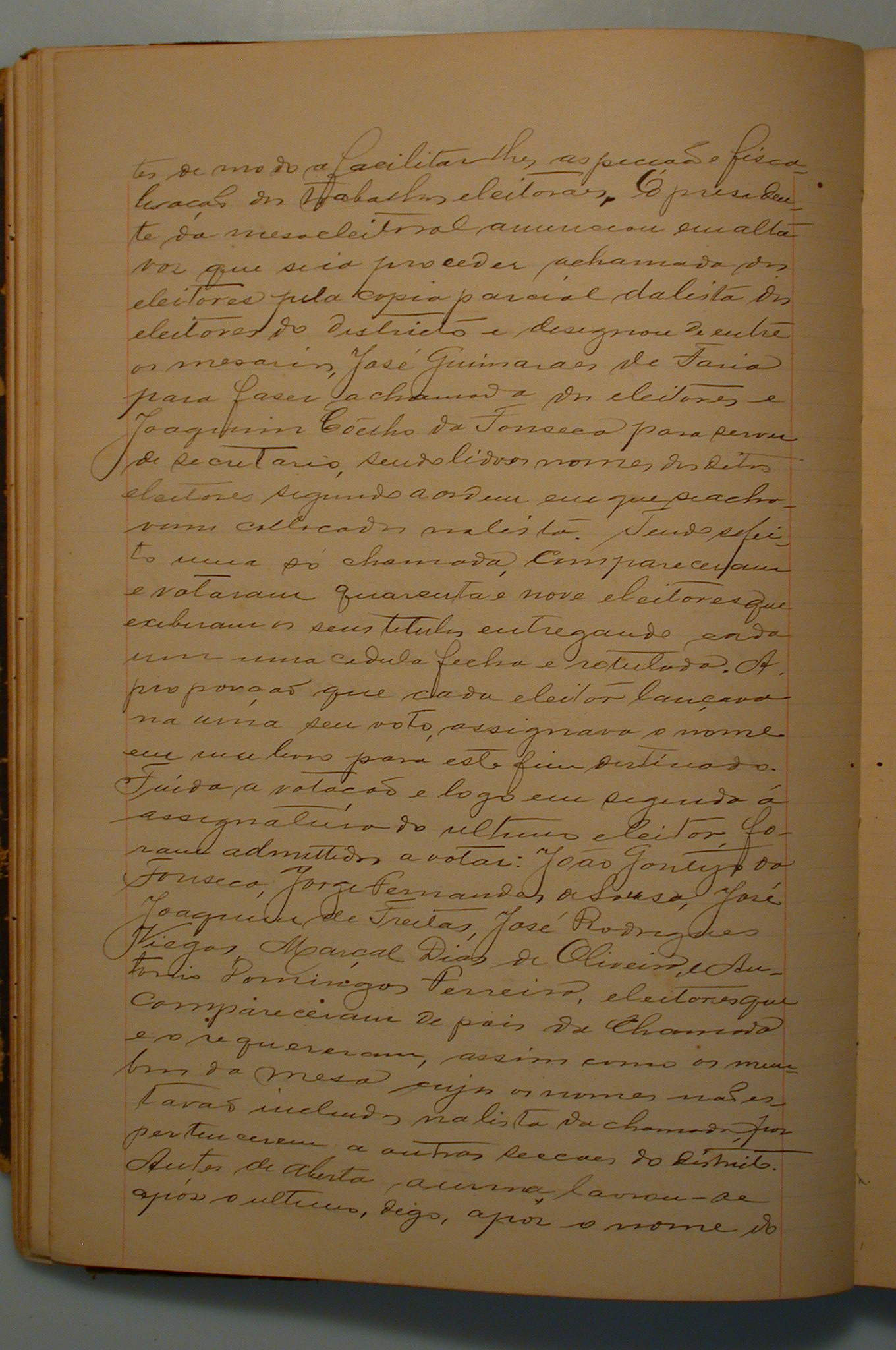 ACTA DE ELEIÇÃO PARA SENADOR ESTADOAL, AOS 16 DIAS DO MÊS DE SETEMBRO DE 1917, NESTE DISTRITO E MUNICÍPIO DE DIVINÓPOLIS, NA 2ª SALA DO EDIFÍCIO MUNICIPAL, LUGAR DESIGNADO PARA FUNCIONAR A 1ª SECÇÃO ELEITORAL. COMPARECERAM E VOTARAM 49 ELEITORES QUE ELEGERAM O DR.JOSÉ COPERTINO TEIXEIRA FONTES COM 49 VOTOS, PARA SENADOR ESTADUAL.