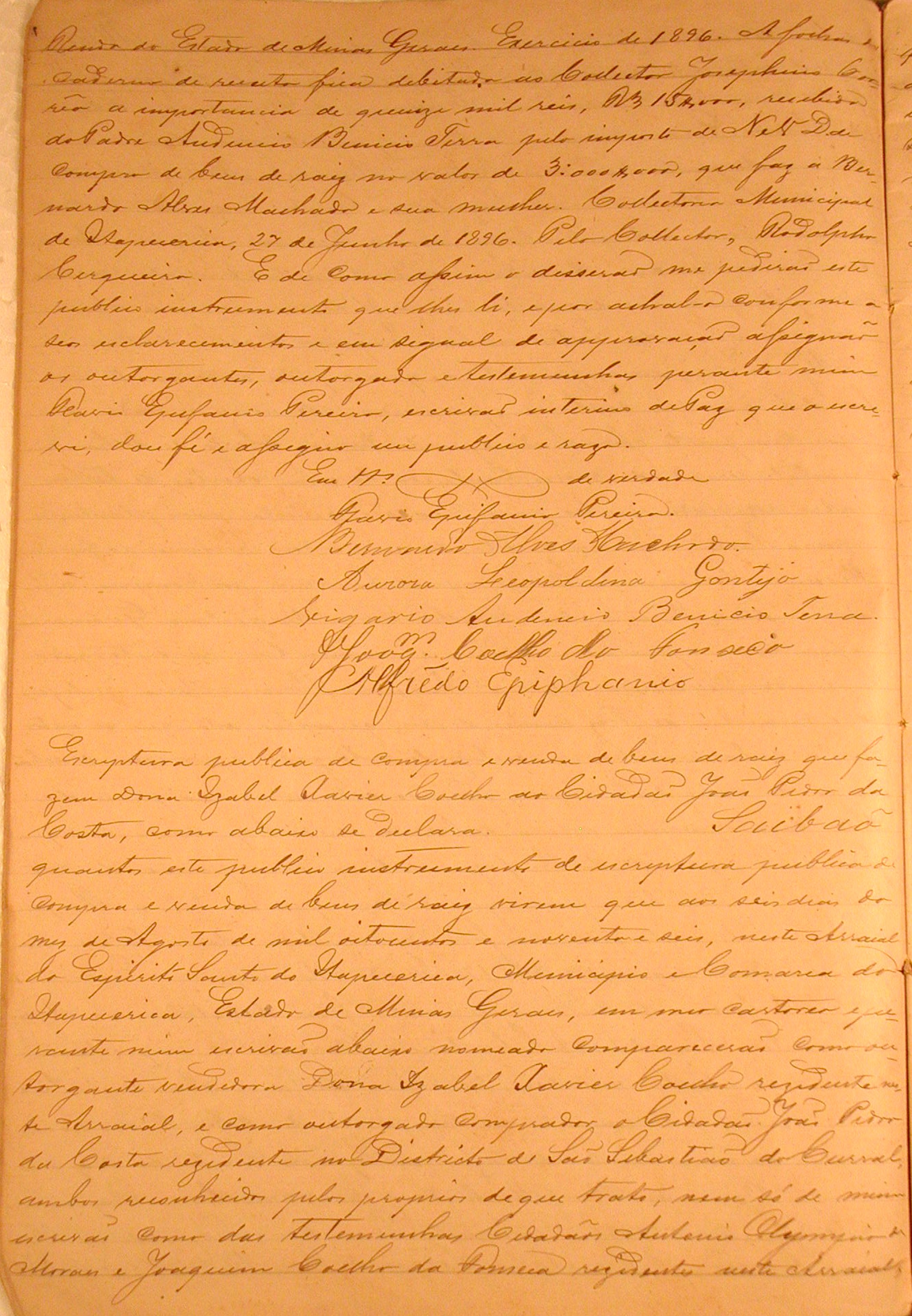 Escrivão - Arraial - Espírito Santo do Itapecerica - Escritura - Compra e Venda de Bens de Raiz - Comarca de Itapecerica - Ata - Procuração.
