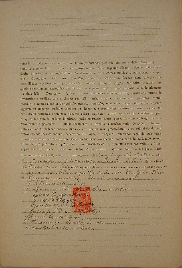 PROCURAÇÃO BASTANTE QUE FAZEM MARIA FAUSTINA DE JESUS, SEUS FILHOS ANNA CANDIDA DE JESUS QUE NOMEIA COMO SEU PROCURADOR SEVERO MENDES DOS SANTOS RIBEIRO, ADVOGADOS COM PODERES ESPECIAIS PARA REQUERER, O ARROLAMENTO DE INVENTÁRIO DOS BENS DEIXADOS POR CANDIDO JOAQUIM DE SOUSA.