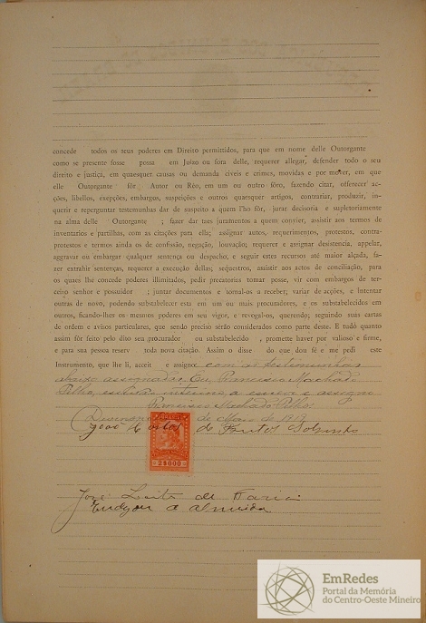 PROCURAÇÃO BASTANTE QUE FAZ JOÃO CARLOS DE FREITAS SOBRINHO QUE NOMEIA COMO SEU PROCURADOR SEVERO MENDES DOS SANTOS RIBEIRO, ADVOGADO PARA MOVER AÇÃO DE QUALQUER ORDEM, ACOMPANHAR-LAS DESDE A PROPOSITURA ATÉ SOLUÇÃO FINAL E SUA EXECUÇÃO.
