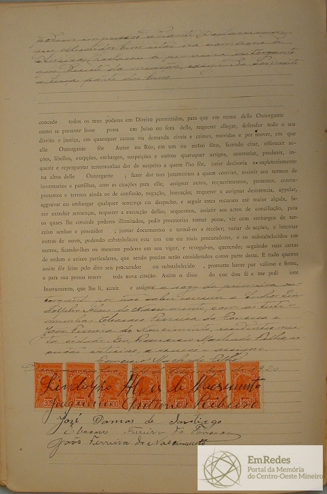 PROCURAÇÃO BASTANTE QUE FAZ MARIA JOSEFA DO NASCIMENTO, JOAQUIM ÂNTUNES RIBEIRO, RESIDENTES NESTA CIDADE E JOSÉ DAMASO SANTIAGO, RESIDENTE EM SANTO ANTONIO DO MONTE, NESTE ESTADO QUE NOMEARAM COMO SEU PROCURADOR O MAJOR JOAQUIM DIAS BICALHO JUNIOR, PARA REQUERER O INVENTARIO DOS BENS DEIXADOS PELO FINADO FRANCISCO ANALBERTO SANTIAGO, MARIDO E SOGROS E PAI DOS OUTORGANTES.