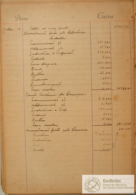 Subsérie: LIVRO CAIXA DA CÂMARA MUNICIPAL