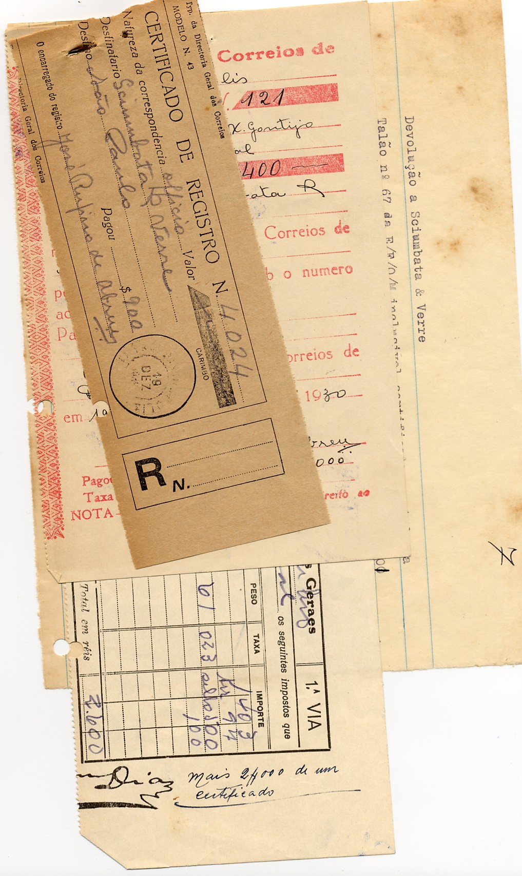 PAGUE-SE AO SENHOR SCIUMBATA E VERRE, DE ACCORDO COM A LEI Nº 179 DE 12 DE NOVEMBRO DE 1929, PELA VERBA EXPEDIENTES A QUANTIA DE 43$900 (QUARENTA E TRÊS MIL E NOVECENTOS RÉIS).