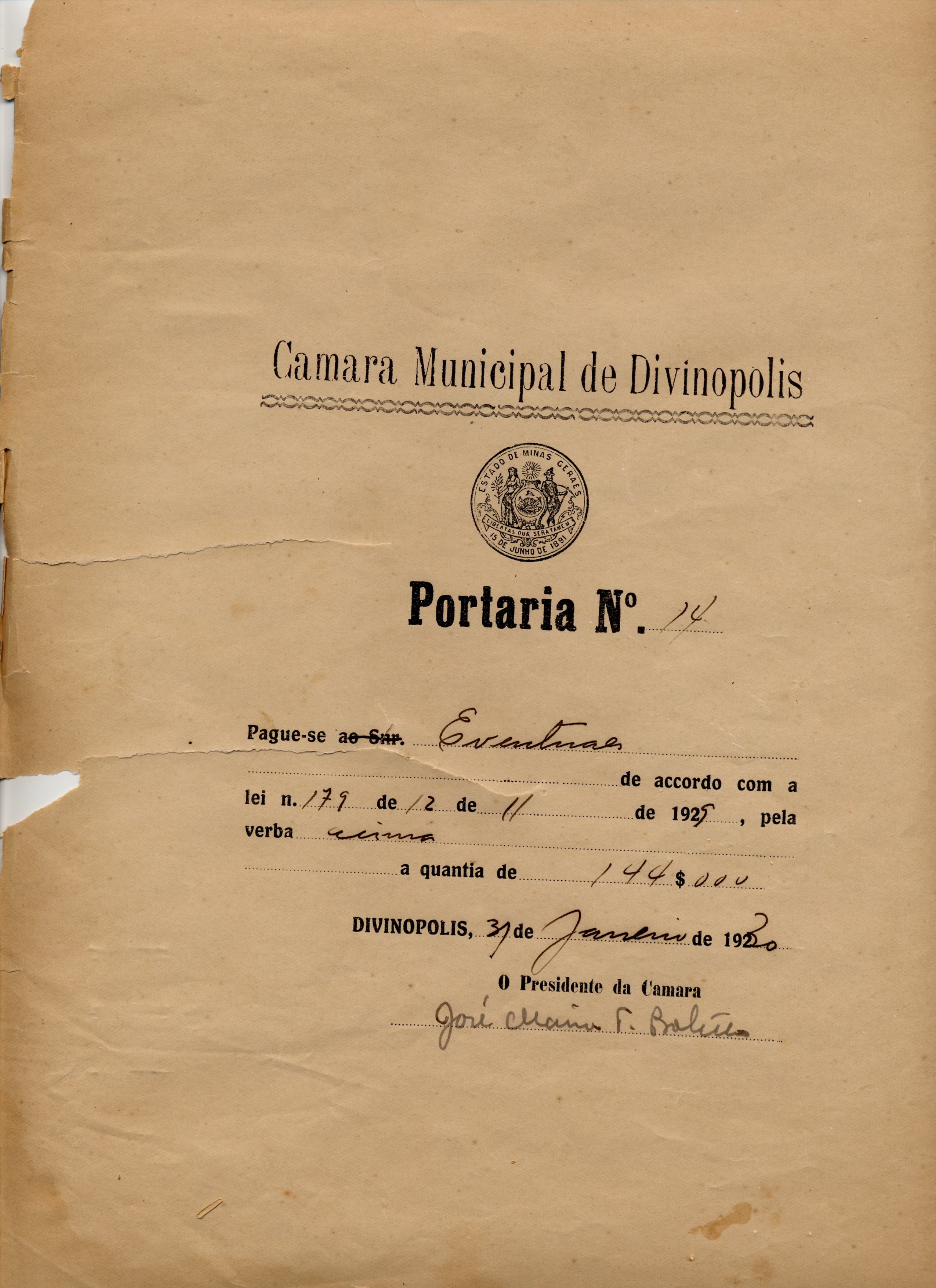 PAGUE-SE A EVENTUAES DE ACCORDO(SIC) COM A LEI Nº 179 DE DOZE DE NOVEMBRO DE 1929, PELA VERBA ACIMA, A QUANTIA DE 144$000 (CENTO E QUARENTA E QUATRO MIL RÉIS).