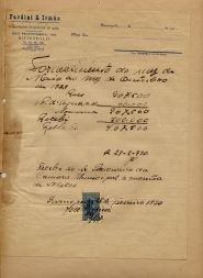 OBS: UM RECIBO DE PAGAMENTO REFERENTE A FORNECIMENTO FEITOS POR PARDINI E IRMÃOS DO MEZ DE OUTUBRO DE 1929.
