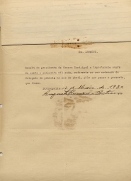 OBS: UM RECIBO DE PAGAMENTO FEITO AO SNR AUGUSTO RAMOS E ESTEVES REFERENTE A ORDENADO DE DELEGADO DE POLÍCIA NO MEZ(SIC) DE MAIO DE 1930.