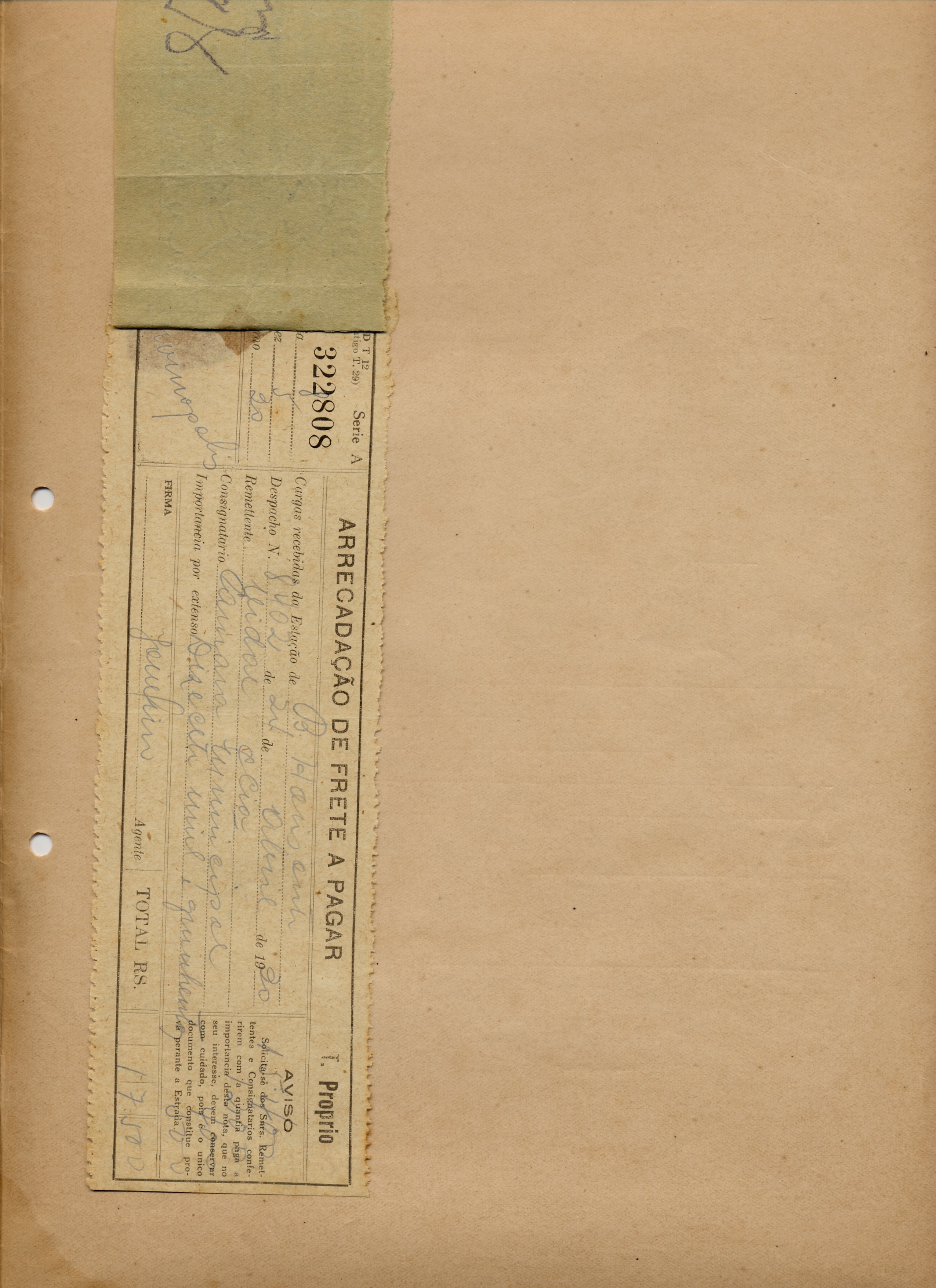 OBS: UM RECIBO DA REPARTIÇÃO GERAL DOS TELÉGRAFOS NO VALOR DE 1$900, DE 18 DE NOVEMBRO DE 1930 E UM RECIBO DE ARRECADAÇÃO DE FRETE A PAGAR NO VALOR DE 17$500 (DEZESSETE MIL E QUINHENTOS RÉIS), DE 24 DE ABRIL DE 1930.