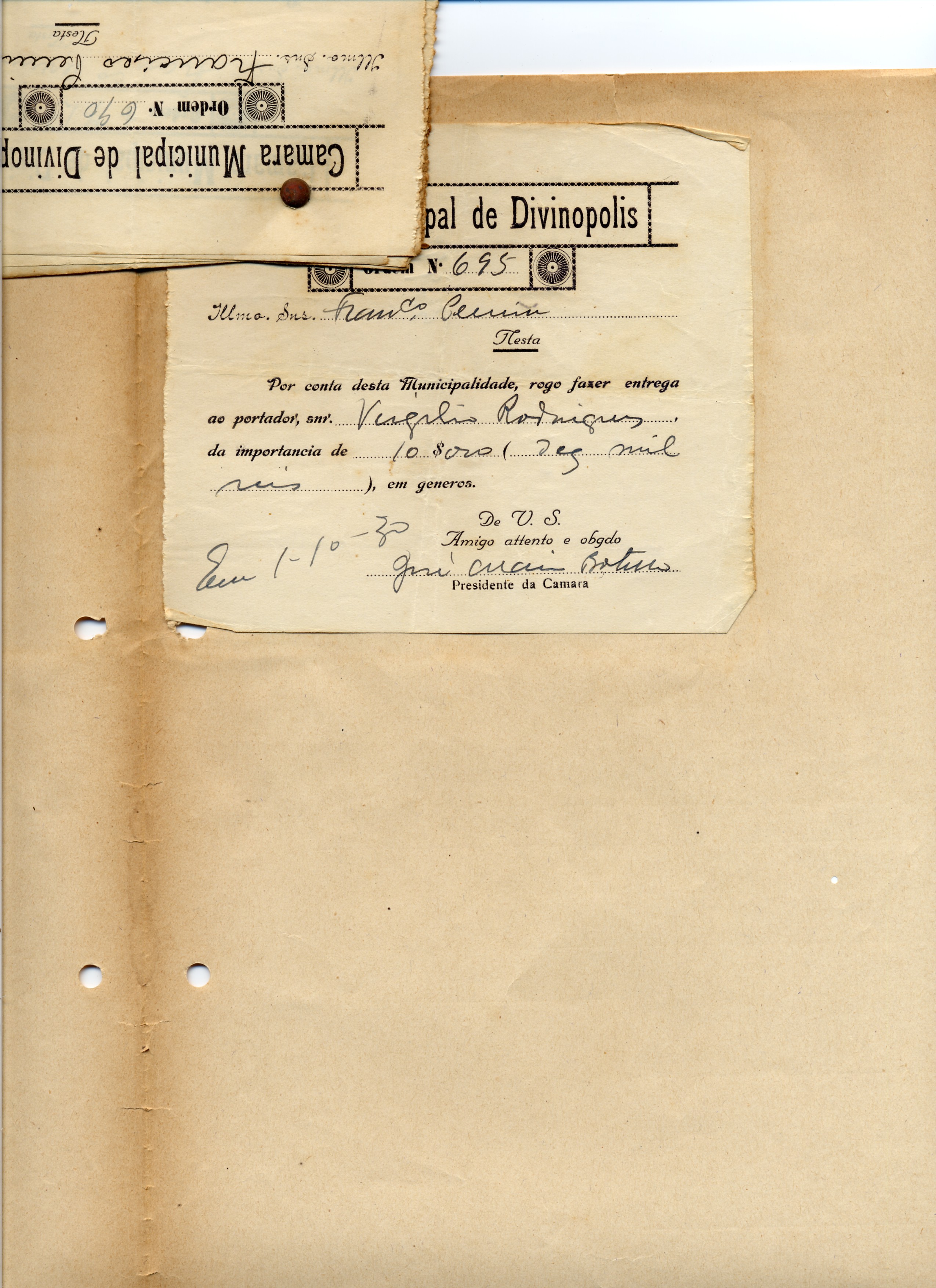 PAGUE-SE AO SNR FRANCISCO PEREIRA DE ACCORDO(SIC) COM O DECRETO Nº 2 DE 14 DE DEZEMBRO DE 1930, PELA VERBA AMORTIZAÇÃO A QUANTIA DE 329$900 (TREZENTOS E VINTE E NOVE MIL E NOVECENTOS RÉIS).