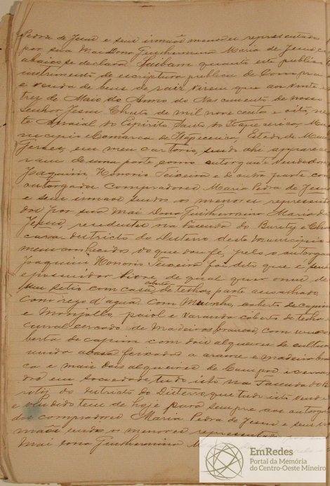 ESCRITURA PÚBLICA DE COMPRA E VENDA DE BENS DE RAIZ QUE FAZEM COMO AUTORGANTE VENDEDOR JOAQUIM HONÓRIO TEIXEIRA E OUTRO COMO AUTORGANTE COMPRADOR MARIA PEDRA DE JESUS E SEUS IRMÃOS, SENDO OS MENORES REPRESENTADOS POR SUA MÃE GUILHERMINA MARIA DE JESUS RESIDENTES NA FAZENDA DO BURITY E CHÁCARA, DISTRITO DO DESTERRO DESTE MUNICIPIO, A VENDA DE UM SITIO COM CASA DE TELHA, REGO DAGUA, MUINHO, MONJOLO E PAIOL E MAIS 2 ALQUEIRES DE CULTURA UNIDO A CASA E MAIS DOIS ALQUEIRES EM SOCIEDADE TUDO ISTO NA FAZENDA DO BURITY, DISTRITO DO DESTERRO PELO PREÇO E QUANTIA DE 1 CONTO DE RÉIS.