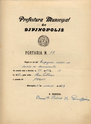 PAGUE-SE AOS EMPREGADOS ADIDOS AO SERVIÇO DO SANIAMENTO(SIC) DE ACORDO COM O DECRETO Nº 40 DE 24 DE DEZEMBRO DEE 1932, PELA VERBA OBRAS PÚBLICAS A QUANTIA DE 172$000 (CENTO E SETENTA E DOIS MIL RÉIS).