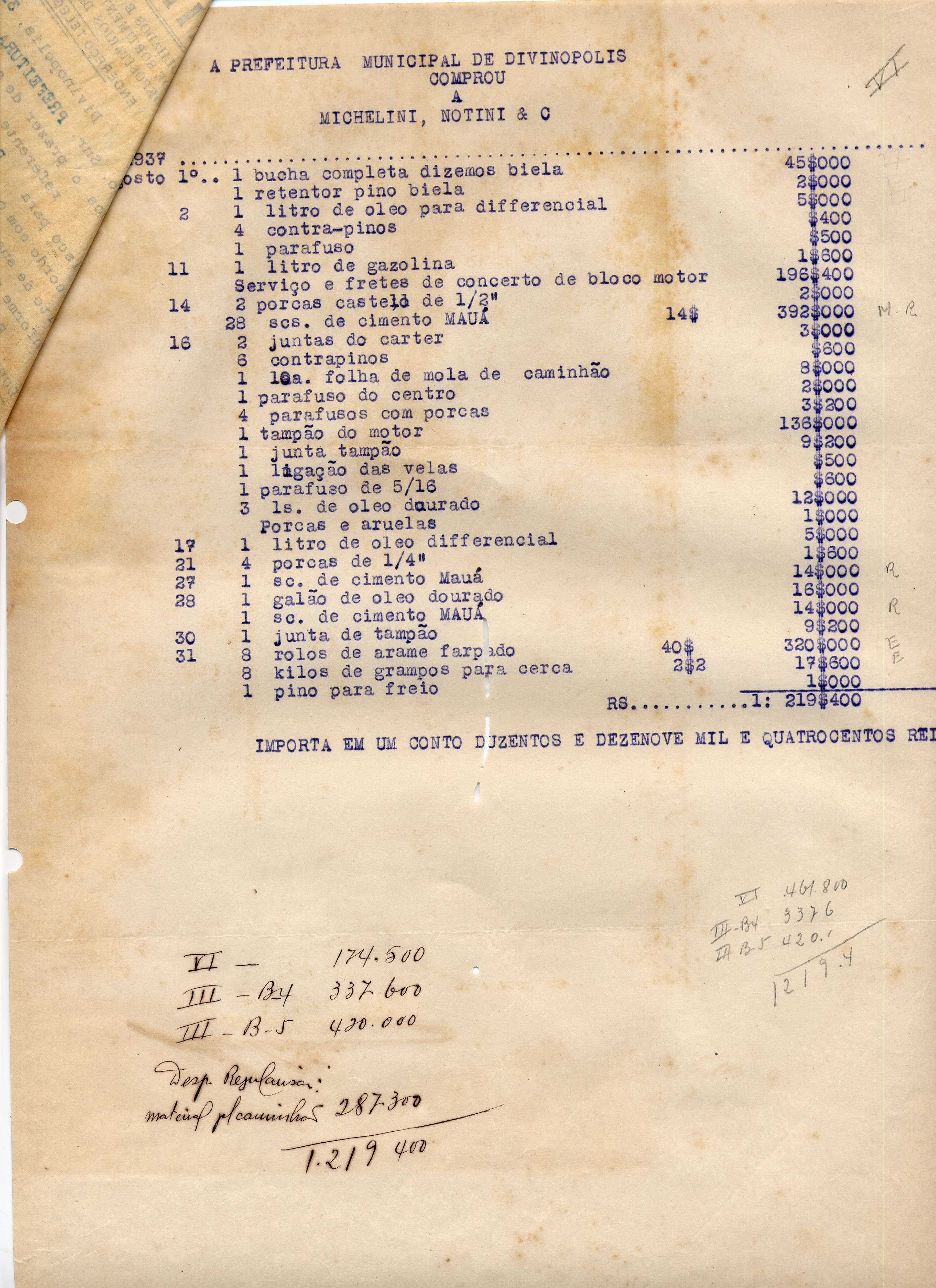 PAGUE-SE AO SNR. MICHELINI NOTINI & CIA DE ACORDO COM A RESOLUÇÃO Nº 2 DE 29 DE SETMBRO DE 1936, , PELA VERBA ABAIXO ESPECIFICADA, A QUANTIA DE 1.219$400 (HUM CONTO, DUZENTOS E DEZENOVE MIL E QUATROCENTOS RÉIS).