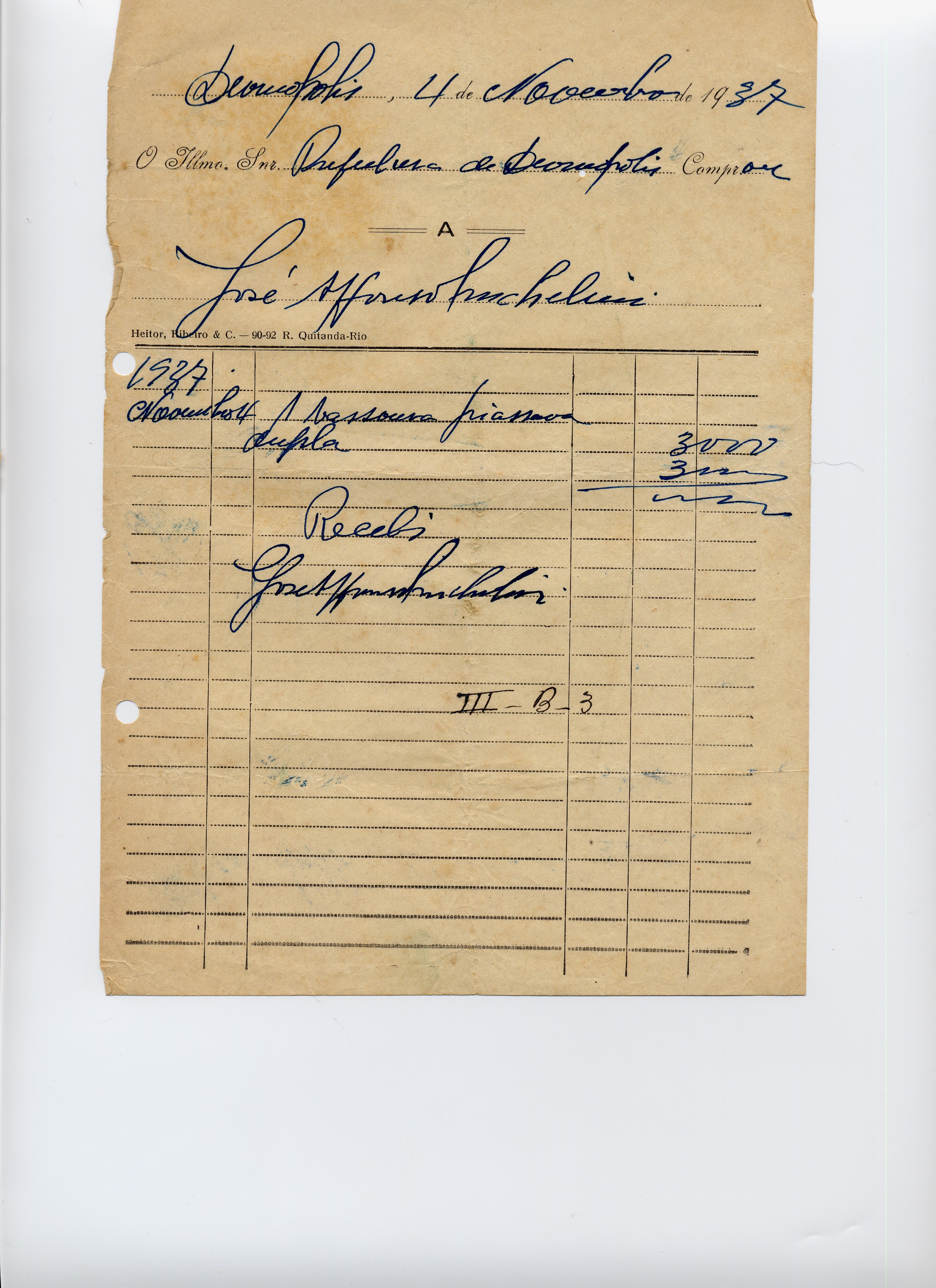 PAGUE-SE AO SR. JOSÉ AFFONSO MICHELINI DE ACCORDO(SIC) COM O DECRETO Nº _____DE_____DE__________DE 19____(SIC), PELA VERBA III-B3- 1 VASSOURA A QUANTIA DE 3$000 (TRÊS MIL RÉIS).