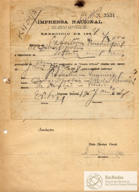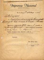 OBS: 02 RECIBOS DE PAGAMENTO REFERENTE A ASSINATURA DO DIÁRIO OFICIAL.EMITIDO EM 17 DE MARÇO DE 1938.