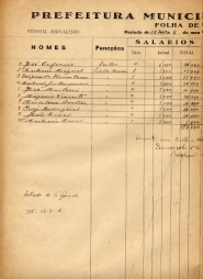 OBS: RECIBO DE PAGAMENTO DOS FUNCIONÁRIOS DA PREFEITURA RELATIVO AO PERÍODO DE 28 DE FEVEREIRO A 05 DE MARÇO DE 1938.