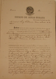 PROCURAÇÃO BASTANTE QUE FAZ LUIZ FREDERICO, CONSTITUE SEU BASTANTE PROCURADOR FRANCISCO LUIZ DE OLIVEIRA RESIDENTE NESTE ARRAIAL COM PODERES PARA RECEBER DA COMPANHIA ESTRADA DE FERRO OESTE DE MINAS A IMPORTÂNCIA DE 46 MIL RÉIS E CEM REIS DE SEUS ORDENADOS VENCIDOS CONFORME VALE NUMERO 27 DE 16 DE JANEIRO DE 1899.