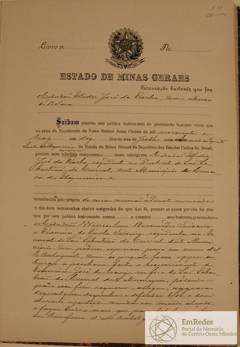 Escrivão - Arraial - Espírito Santo do Itapecerica - Livro de Registro de Procurações