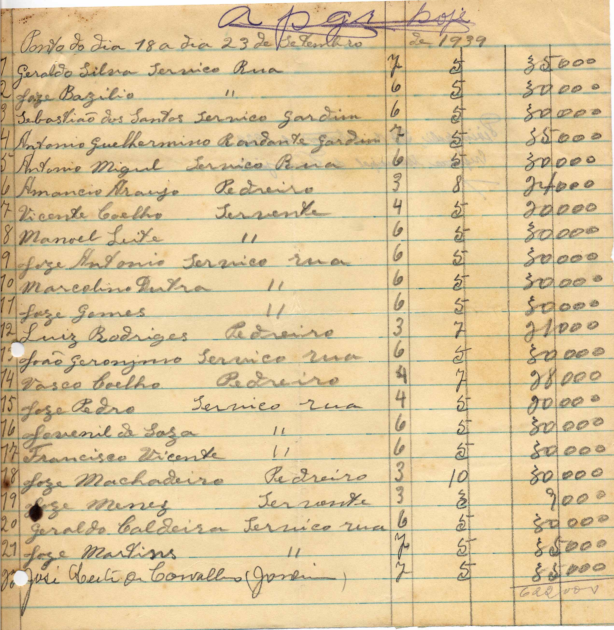OBS: RECIBO REFERENTE A FOLHA DE PAGAMENTO DO PESSOAL DE SERVIÇO DE CONSERVA DE RUAS E JARDINS.