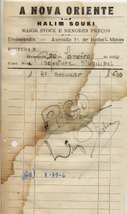 PAGUE-SE AO SNR HALIM SOUKI DE ACORDO COM O DECRETO Nº 36 DE 18 DE XII DE 1939, PELO TÍTULO 8-99-6 - 1 QUILO DE ASSUCAR(SIC) A QUANTIA DE 1$600 (HUM MIL E SEISCENTOS RÉIS)
