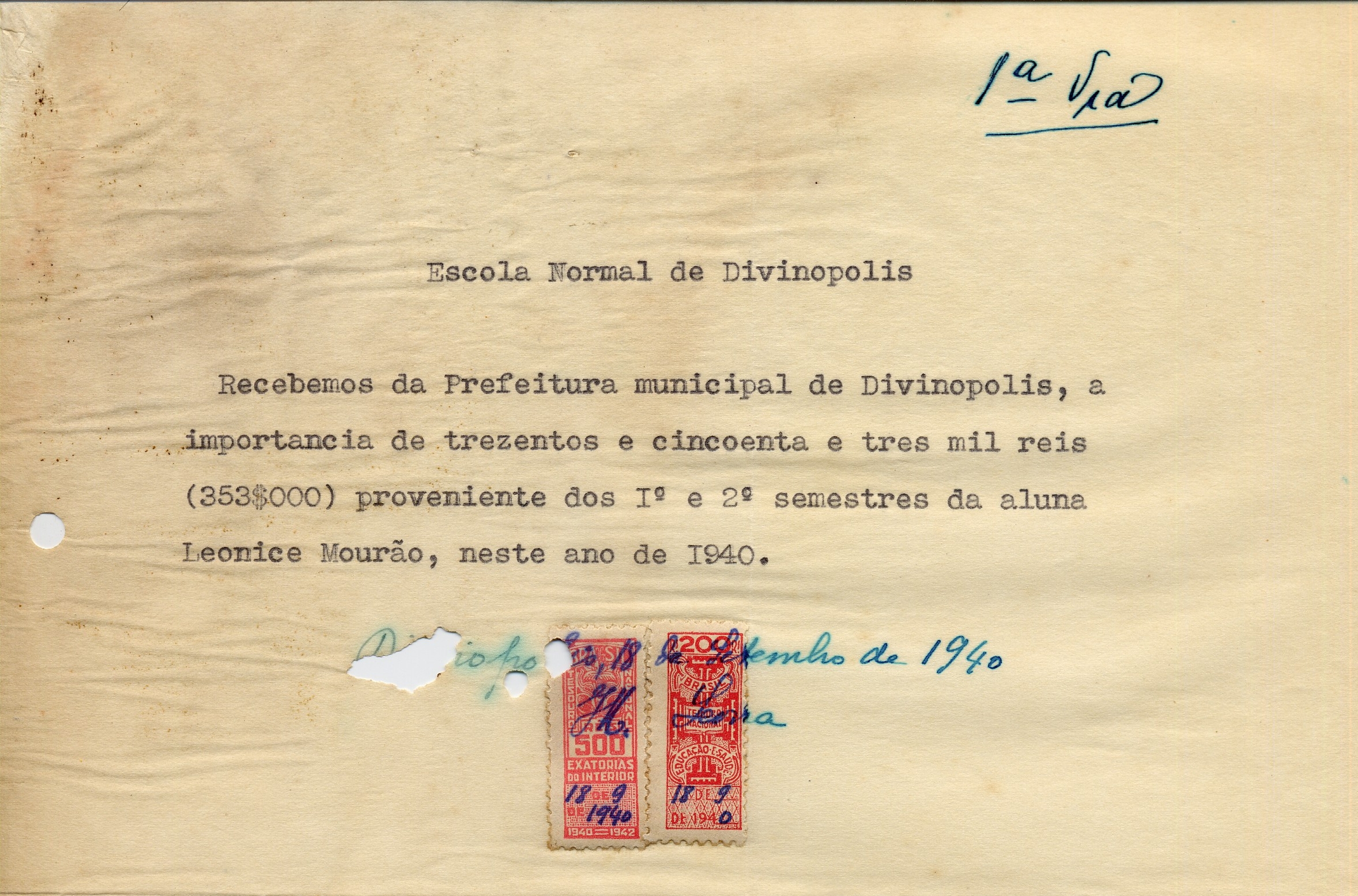 PAGUE-SE AO SNR IRMÃ M. LEONA - E. NORMAL DE ACORDO COM O DECRETO Nº 36 DE 18 DE XII DE 1939, PELO TÍTULO 8-99-6 - PAGAMENTO DO 1º E 2º SEMESTRE DE ESTUDOS DO ALUNO GRATUITO, LEONICE MOURÃO - PRÊMIO ANTONIO OLYMPIO, A QUANTIA DE 353$000 (TREZENTOS E CINQUENTA E TRÊS MIL RÉIS)
