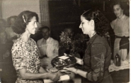 CANTIMIRA MARIA DE JESUS (EM 1969 É RECONHECIDA COMO ARTESÃ) RECEBE DE MARIA SALOMÉ DE SOUSA, DIPLOMA E BRINDE PELO 2º CURSO RURAL-DIVINÓPOLIS, 1950.