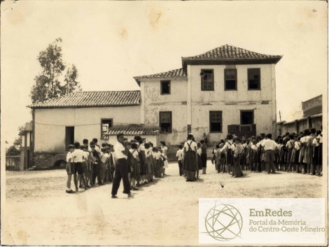 CASARÃO: PÁTIO DO GRUPO ESCOLAR MONS. DOMINGOS EVANG. PINHEIRO, HOJE MUSEU HISTÓRICO DE DIVINÓPOLIS. 19/10/1956