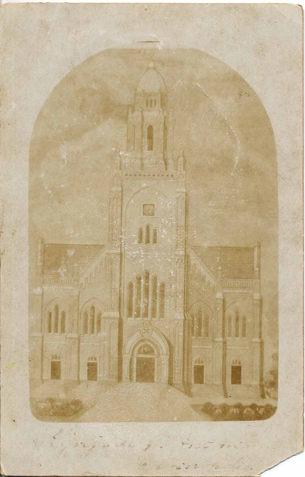 O SANTUÁRIO DE SANTO ANTONIO SERIA ASSIM, CONFORME AFIRMOU FREI HILÁRIO NO VERSO DA FOTOGRAFIA POR ELE OFERECIDA A ANTÔNIO OLÍMIPO DE MORAES "RETRATO DA FUTURA IGREJA DE DIVINÓPOLIS". OFERTA DE ANTÔNIO OLÍMIPO DE MORAIS FILHO.