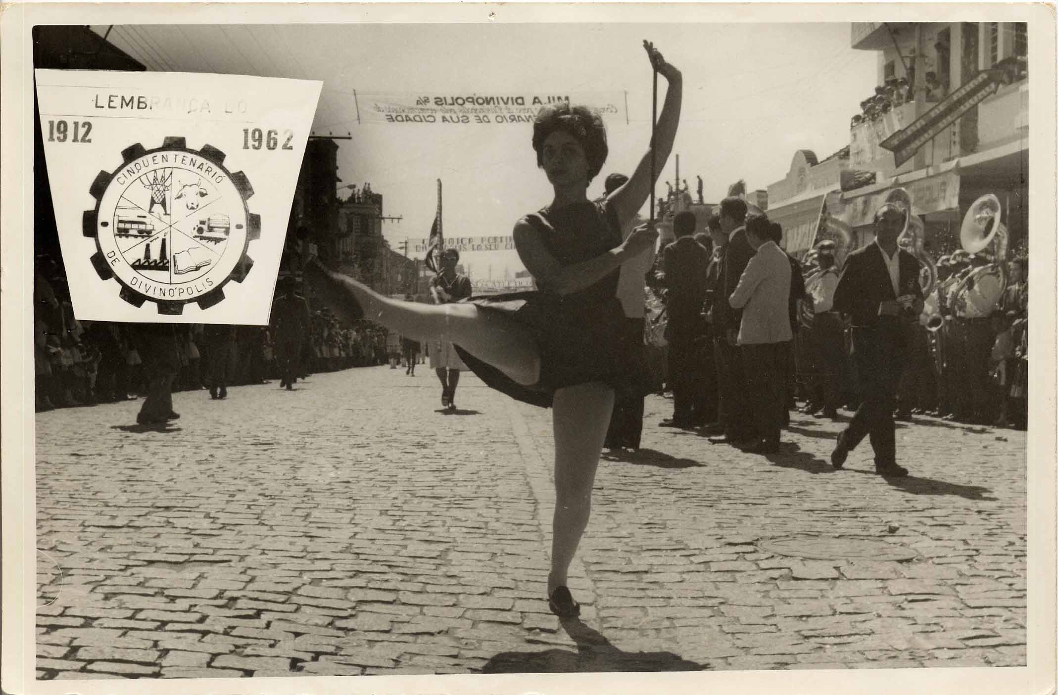 TRECHO DA AV. 1º DE JUNHO - DESFILE COMEMORATIVO DO CINQUENTENÁRIO DE DIVINÓPOLIS (1912/1962) - NA FOTO APARECE UMA BALIZA.