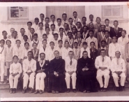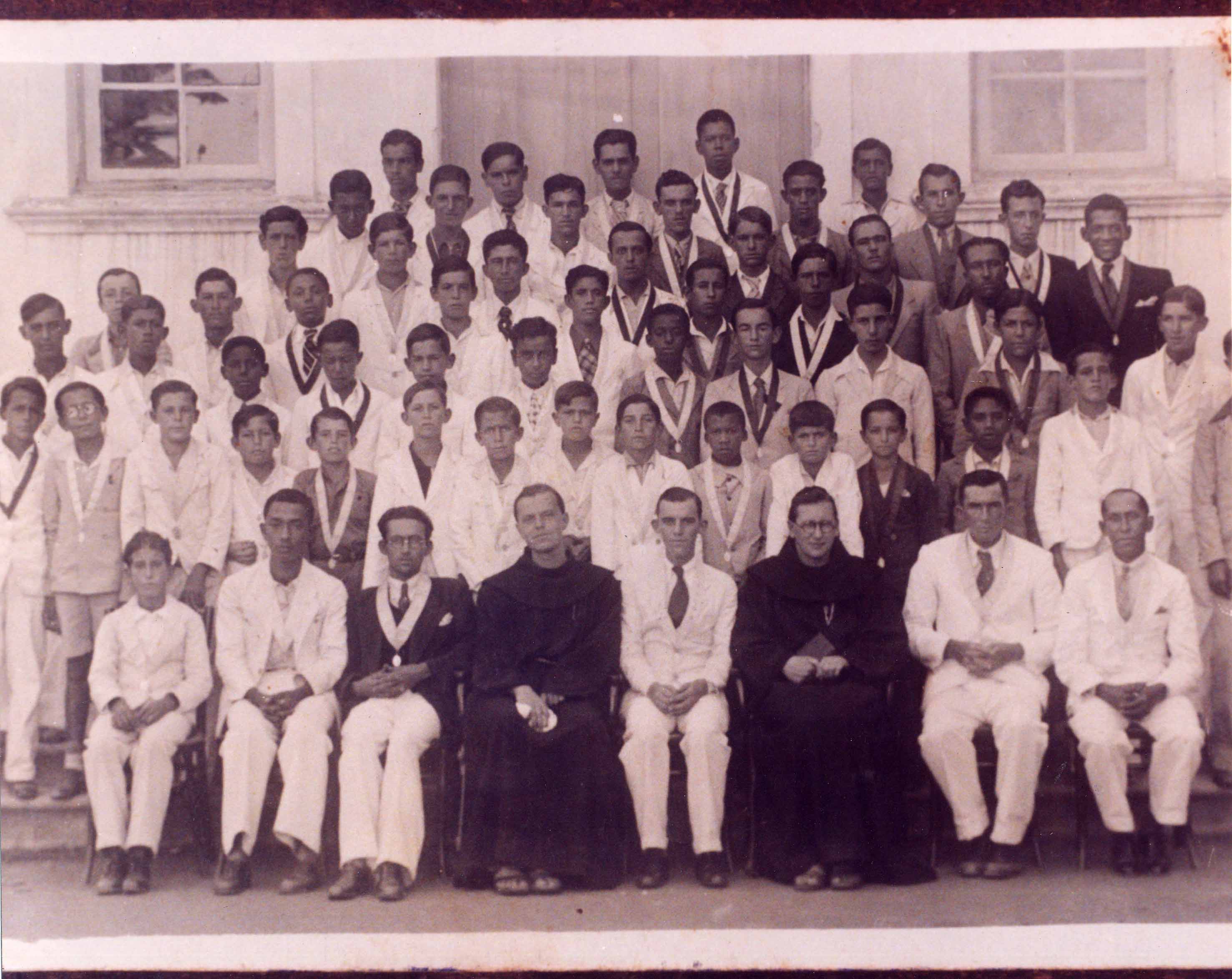 CONGREGADOS MARIANOS EM FRENTE A SACRISTIA DA PARÓQUIA DE SANTO ANTONIO - FREI ERASMO - FREI RODRIGO - E OS MENINOS: GERALDO LARA - JOÃO LARA - MIGUEL LARA - ORIVALDO ANDRADE - OSIRIS MOREIRA - SILVIO MOREIRA - JOAQUIM INÁCIO - ANTONIO TEODORO - MILTON BARBOSA - MOACIR LAUDARES - EDSON CUNHA.