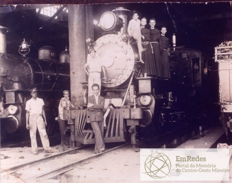 FRANCISCANOS NAS OFICINAS DA REDE MINEIRA DE VIAÇÃO - GERALDO DIAS LARA (CRIANÇA) - FREIS: ERASMO - GRANDIOSO/GALDIOSO - FELICÍSSIMO E SR. CONSTANT SILVA (DE TERNO)