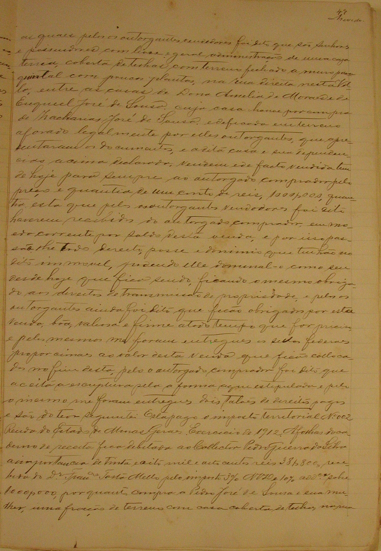 ESCRITURA PÚBLICA DE COMPRA E VENDA DE BENS DE RAIZ QUE FAZEM PEDRO JOSÉ DE SOUSA AO DOUTOR FRANCISCO TOSTA MELLO, A VENDA DE UMA CASA TÉRREA, PELO PREÇO DE 1 CONTO DE REIS.