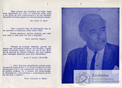 CONVITE DA EXPOSIÇÃO: "DR. SEBASTIÃO GOMES GUIMARÃES - O HOMEM, O MÉDICO, O POLÍTICO" REALIZADA NO MUSEU HISTÓRICO DE DIVINÓPOLIS DE 27/09 A 05/12/1989.