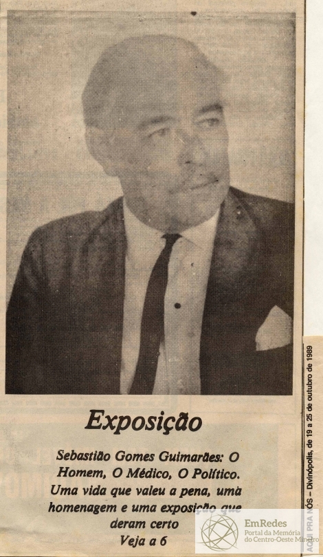 RECORTES DE JORNAL SOBRE A EXPOSIÇÃO: "DR. SEBASTIÃO GOMES GUIMARÃES - O HOMEM, O MÉDICO, O POLÍTICO" REALIZADA NO MUSEU HISTÓRICO DE DIVINÓPOLIS DE 27/09 A 05/12/1989 - MUSEU