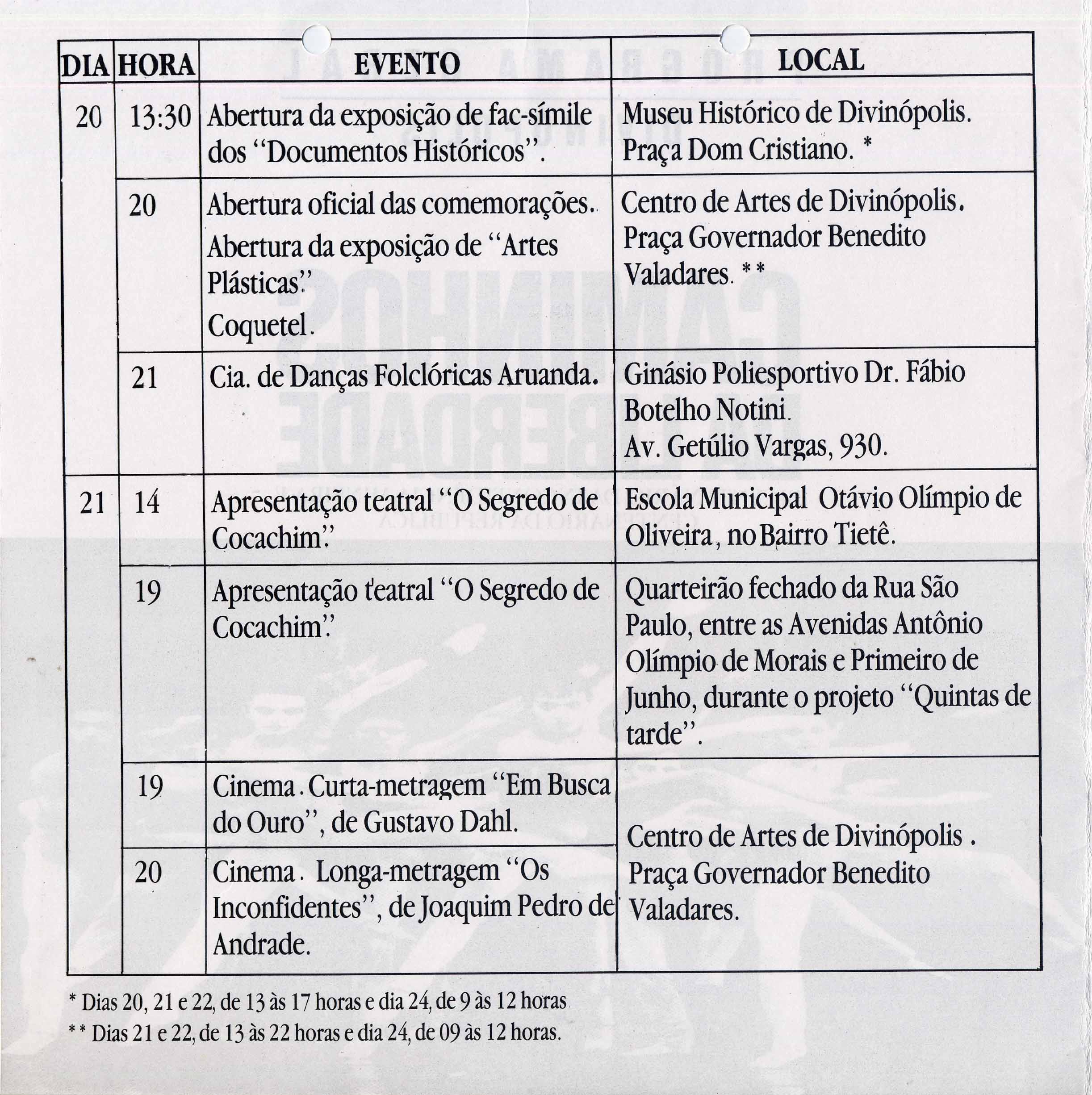 PROGRAMA DA EXPOSIÇÃO: "CAMINHOS DA LIBERDADE" - MUSEU