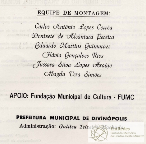 CATÁLOGO DA EXPOSIÇÃO "ARTE E MEMÓRIA" - REALIZADA NO MUSEU HISTÓRICO DE DIVINÓPOLIS EM 16/03/1989