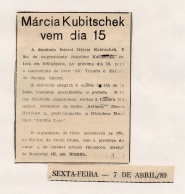 RECORTES DE JORNAIS (JORNAL AGORA - JORNAL "A NOTÍCIA" - JORNAL "AQUI PRÁ NÓS") - ASSUNTOS: ATIVIDADES DO MUSEU - MÁRCIA KUBISTCHECK - ACERVO DO CENTRO DE ARTES - REGISTRO DA TRAJETÓRIA HUMANA - 1989.