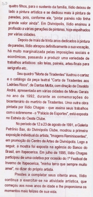FOLDER SOBRE EXPOSIÇÃO "A PINTURA DE ILÍDIO CHAGAS" REALIZADA NO MUSEU HISTÓRICO DE DIVINÓPOLIS DE 10 A 25 DE ABRIL DE 1996.