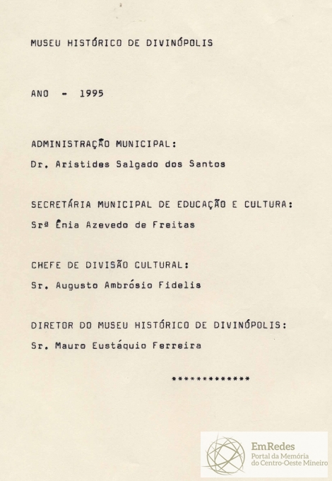 MUSEU HISTÓRICO DE DIVINÓPOLIS - ADM. 1995