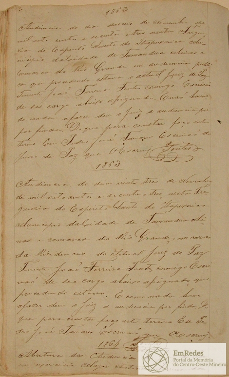 Escrivão - Arraial - Espirito Santo do Itapecerica - Livro de Protocolo e Audiência do Juiz de Paz - Villa do Tamanduá