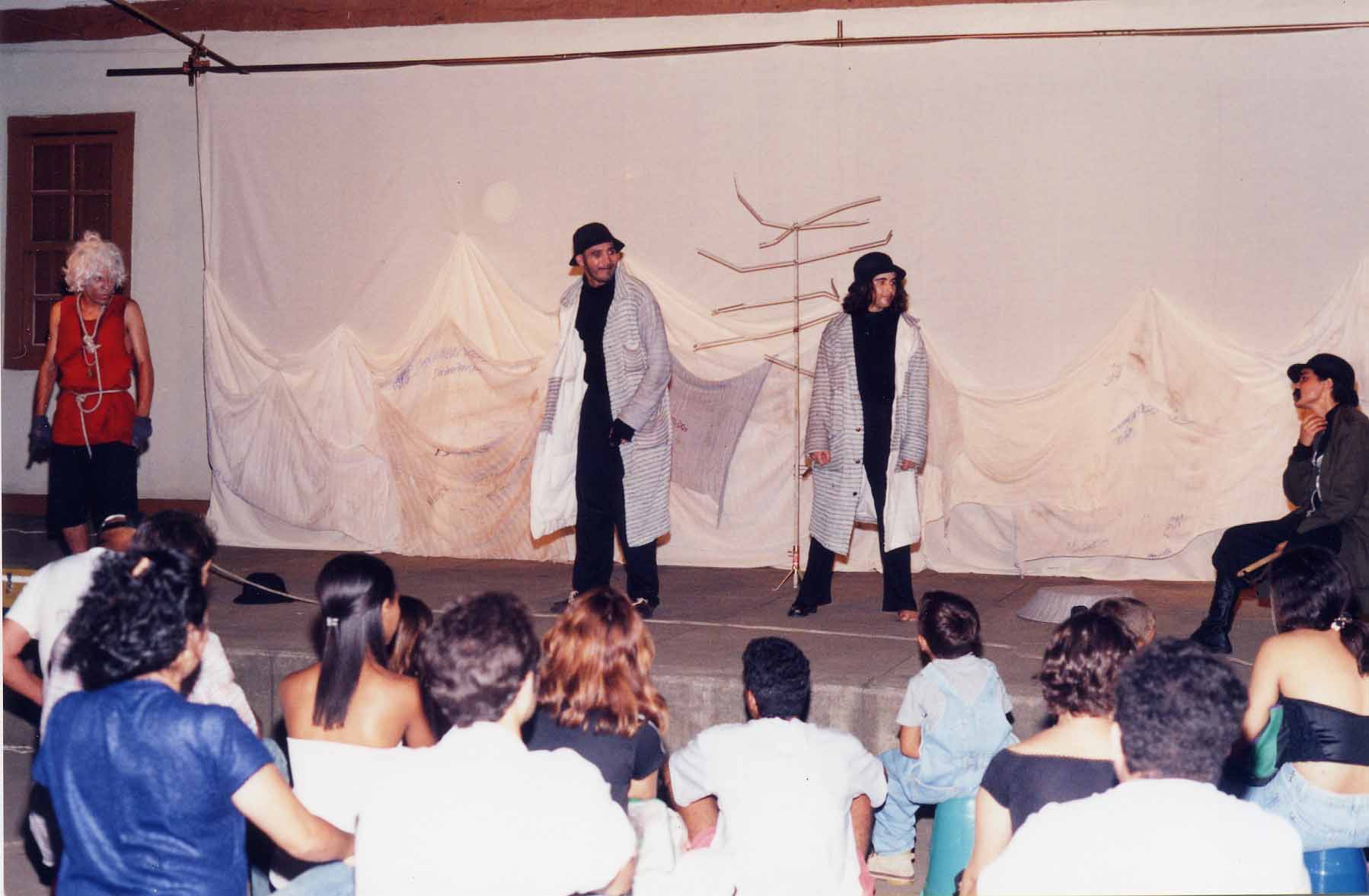 FOTOS DE APRESENTAÇÃO TEATRAL NA FRENTE DO MUSEU.