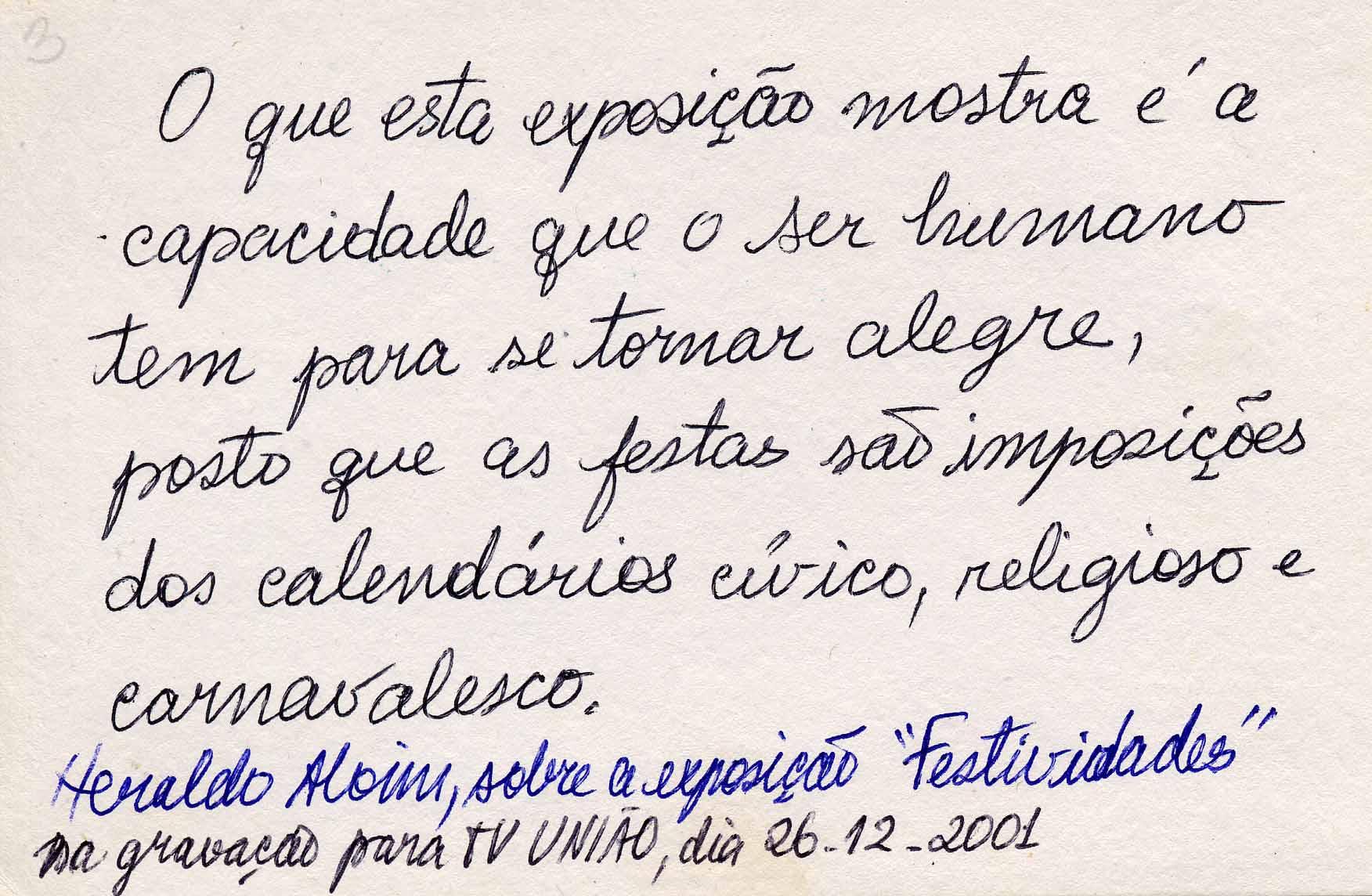 TEXTO DE PALAVRAS DE HERALDO ALVIM SOBRE A EXPOSIÇÃO FESTIVIDADES. - MUSEU
