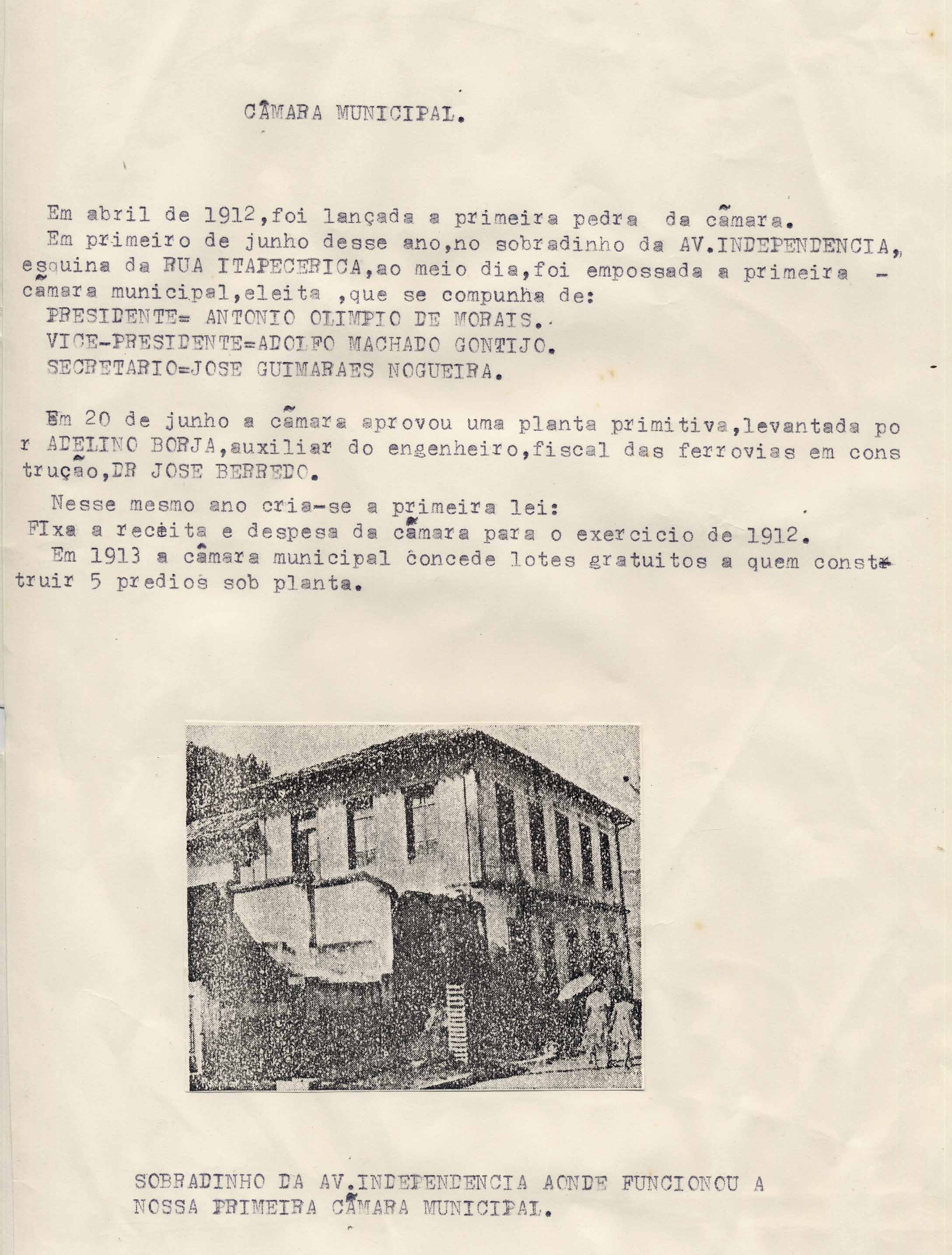 ARTIGO SOBRE A CÂMARA MUNICIPAL - FOTO ABAIXO: SOBRADINHO DA AV. INDEPENDÊNCIA.- FOTOS