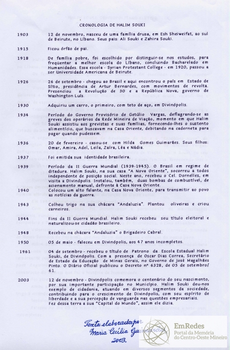 BIOGRAFIA E CRONOLOGIA DE HALIM SOUKI - MUSEU - EXPOSIÇÃO